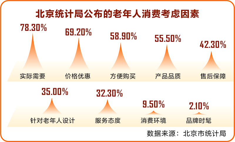 从消费主体看,老年消费者普遍秉持理性和务实的消费观,很少进行情绪消费。根据北京市统计局2024年统计数据,78.3%的老年人将实际需要作为消费时的首要考虑因素,任何不能解决实际痛点的产品都很难打动他们。正因如此,在年轻人身上屡试不爽的流量打法,对银发群体却效用甚微。